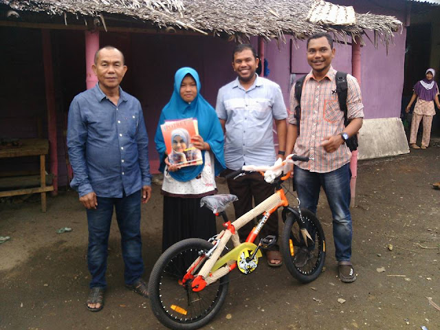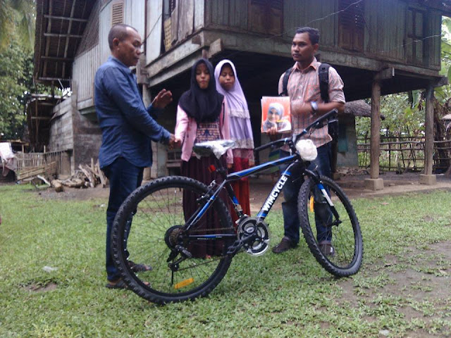 Tepat pukul sembilan, setelah kami merapikan sepeda di punggung mobil, Tabrani menginjak gas. Aku sudah siap dengan daftar nama anak-anak yang nantinya menerima bantuan sepeda ini. Bantuan kecil yang bisa meringankan beban mereka menuju sekolah. Ada perempuan, pula ada laki-laki. Usianya ragam, ada yang masih duduk di bangku sekolah dasar, pula ada yang sudah duduk di bangku sekolah menengah atas.