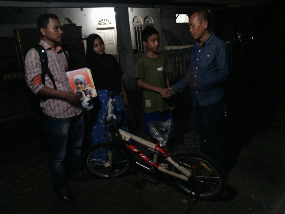 Setelah beberapa menit menyerahkan sepeda, setelah Ismail berulang kali meyakinkan dirinya bahwa matanya masih bisa diselamatkan. Kami pun mundur, pulang. Anak perempuan kecil tadi senyum-senyum. Begitu pula kakaknya. Lalu ibunya, sambal menangis dan mendoakan kami dan para dermawan disebalamtakan Allah serta selalu dimudahkan rezeki. Kami pun beranjak pulang, melewati jalan semak-semak di tengah kegelapan malam itu. Hati pun lega, saatnya kami kembali ke kota Banda Aceh.