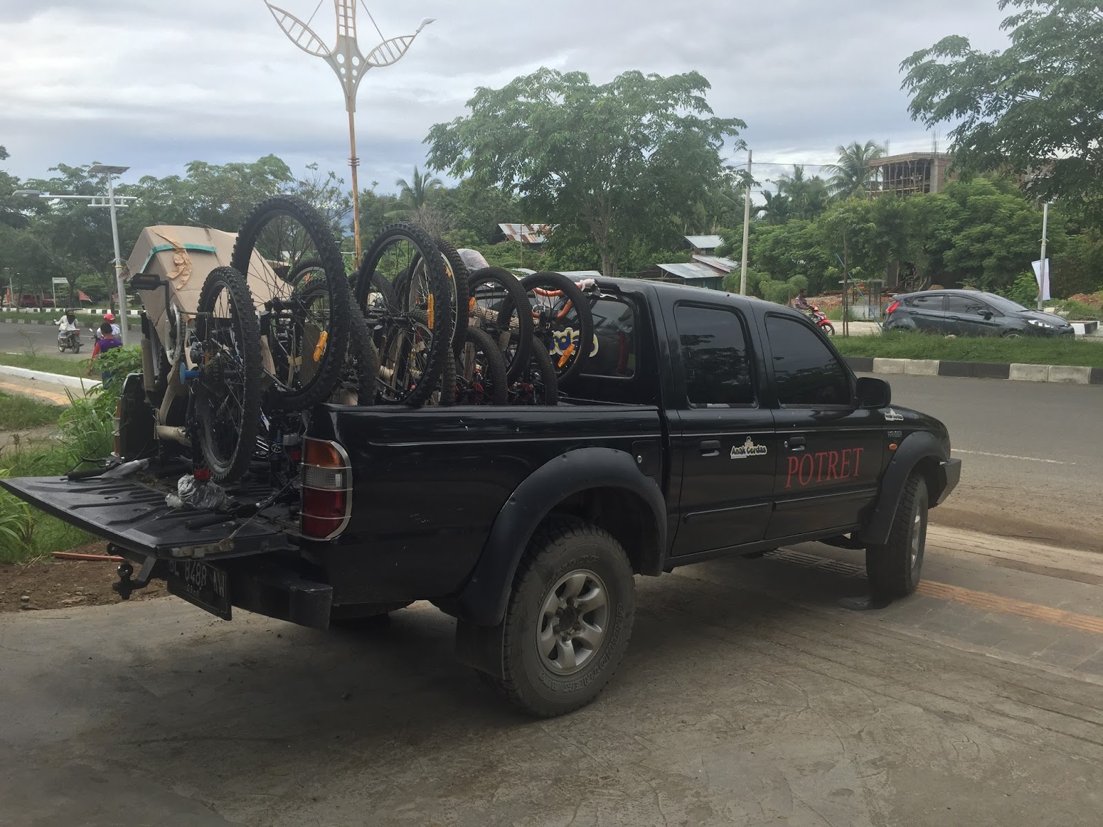 Hari ini saya, Iqbal Perdana, Pak Tabrani Yunis, dan Muhajir kembali mengukur jalan memanggul belasan sepeda. Ukurannya sedang dan besar. Kalau yang besar sudah dilengkapi alat ganti gigi. Kalau melalui jalan yang menanjak bisa diopor gigi rendah, jadi dayungan akan lebih nyaman. Betis tidak akan gembung. Pula jika sedang di medan jalan datar, bisa diopor gigi tinggi. Agar dayungan padu, kecepatan stabil.