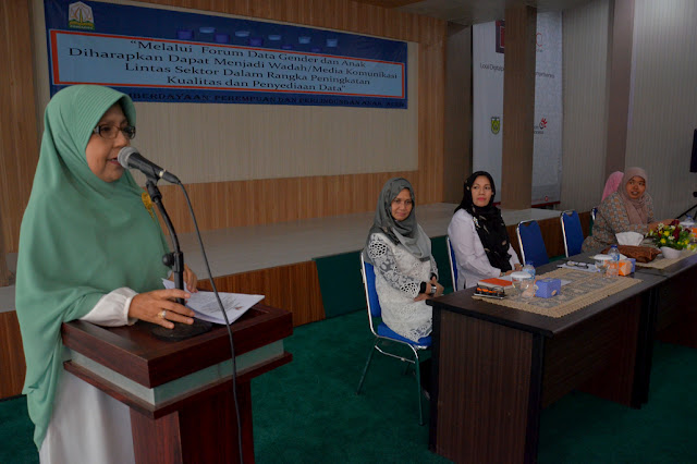 Kepala Dinas Pemberdayaan Perempuan, Perlindungan Anak, Pengendalian Penduduk dan Keluarga Berencana (KB), dr Mediay Yulizar membuka secara resmi kegiatan yang diikuti sekitar 50 peserta dari lintas SKPD ini. Dalam sambutannnya, Media mengatakan selama ini, isu gender dan anak masih kurang diperhitungkan dalam berbagai proses kebijakan pembangunan, dikarenakan ketersediaan data terpilah yang kurang memadai. Padahal data dan informasi ini merupakan sebuah komponen penting dalam penyelenggaraan pembangunan yang digunakan mulai dari tahap perencanaan, penganggaran, implementasi sampai dengan evaluasi program atau pengukuran terhadap pencapaian kinerja pembangunan.