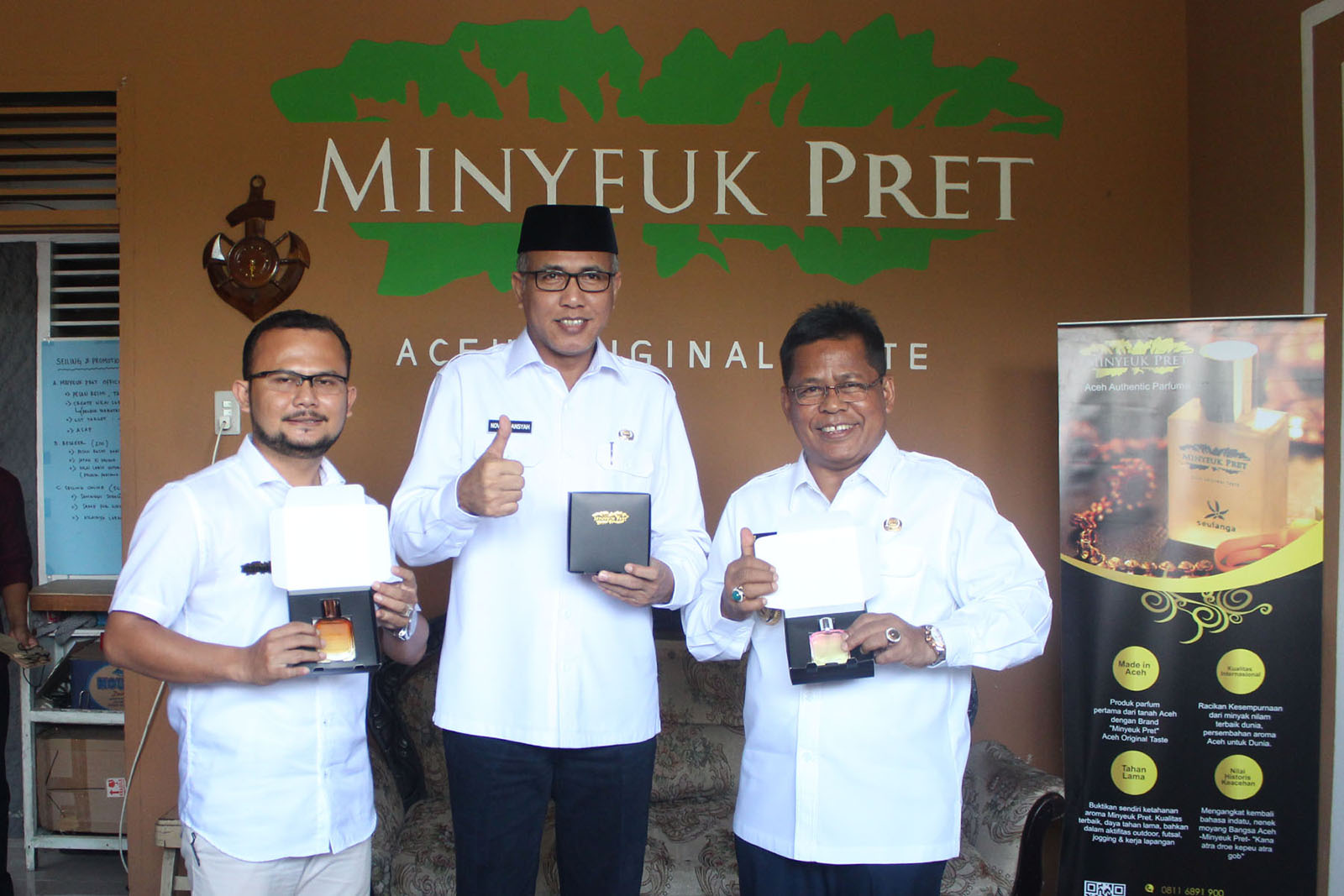 “Kami juga akan mempromosikan parfum ini kepada setiap tamu yang datang ke Banda Aceh, dan mengimbau seluruh jajaran Pemko Banda Aceh untuk memakai parfum ini. Minyeuk Pret sudah terbukti kualitasnya tak kalah dengan produk-produk parfum populer dunia,” puji wali kota.