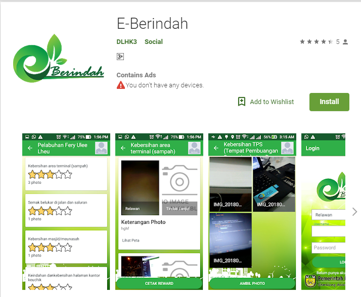 Banda Aceh – Wali Kota Banda Aceh Aminullah Usman meluncurkan secara resmi aplikasi e-Berindah -sebuah aplikasi untuk sistem pengawasan kualitas kebersihan dan keindahan berbasis Android yang digagas Dinas Lingkungan Hidup, Kebersihan dan Keindahan Kota (DLHK3) Banda Aceh.