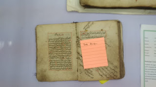 “Jika pada Bulan Dzulkaidah gempa ketika magrib alamat orang kaya banyak mati,” kata penjaga stan, ungkap Istiqamatunnisaq saat membaca kitab yang dibuat tahun 1725 tersebut.