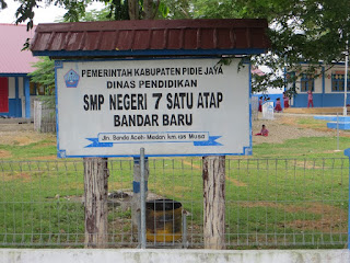 Nah, aku itu bersekolah di salah satu SMP yang ada di kabupaten Pidie Jaya yaitu SMP Negeri 7 Satu Atap Bandar Baru. Sekolahku itu berdiri pada tahun 2012. Lokasinya di desa Balee Musa kecamatan Bandar Baru dan juga dekat dengan jalan raya. Sekolahku dikatakan satu atap karena lokasi sekolahku satu atap dengan SD Negeri Musa. Akan tetapi, kepala sekolah kami itu berbeda. Tidak sama halnya dengan sekolah satu atap lainnya yang biasanya SD dan SMP itu hanya memiliki satu kepala sekolah saja. Sekolahku itu merupakan sekolah favoritku dan kawan-kawanku. Bagaimana tidak, sekolahku itu mudah di jangkau dengan hanya berjalan kaki. Lagi pula 90 % pelajar di SMP Negeri 7 Satu Atap Bandar Baru merupakan pelajar yang berasal dari kalangan penduduk yang ekonominya di bawah alias miskin. Akan tetapi, itu semua tidak membuat aku dan kawan-kawanku berciut hati dan patah semangat dalam menuntut ilmu karena orang-orang sukses bukan karena kaya, tetapi karena dia yakin dan mau berusaha.