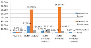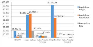Perubahan peruntukan dan fungsi kawasan hutan Aceh pada kawasan Hutan Produksi Terbatas yang diusulkan perubahan fungsi seluas 4.517 ha, perubahan peruntukan seluas 5.496 ha, dan penunjukan baru 5.743 ha. Persetujuan perubahan kawasan Hutan Lindung yang mengalami perubahan fungsi seluas 654 ha, perubahan peruntukan 960 ha, dan penunjukan baru 10.113 ha. Perubahan peruntukan dan fungsi kawasan hutan Aceh pada kawasan Hutan Produksi yang diusulkan perubahan fungsi seluas 91.903 ha, perubahan peruntukan seluas 55.402 ha, dan penunjukan baru 1.137 ha. Persetujuan perubahan kawasan Hutan Lindung yang mengalami perubahan fungsi seluas 66.685 ha, perubahan peruntukan 41.565 ha, dan penunjukan baru 5.456 ha.