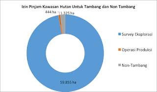 Luasan Izin Pinjam Kawasan Hutan yang digunakan untuk survei/eksplorasi (tambang) dari tahun 2012 sampai dengan Desember 2017 seluas 59.855 ha, luas Izin Pinjam Kawasan Hutan yang digunakan untuk operasi produksi (tambang) pada periode yang sama seluas 444,42 ha. Sedangkan Izin Pinjam Kawasan Hutan untuk keperluan nontambang sampai Desember 2017 seluas 1.325,14 ha.