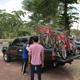 Hari itu saya, Iqbal Perdana, Pak Tabrani Yunis, dan Muhajir kembali mengukur jalan memanggul belasan sepeda. Ukurannya sedang dan besar. Kalau yang besar sudah dilengkapi alat ganti gigi. Kalau melalui jalan yang menanjak bisa diopor gigi rendah, jadi dayungan akan lebih nyaman. Betis tidak akan gembung. Pula jika sedang di medan jalan datar, bisa diopor gigi tinggi. Agar dayungan padu, kecepatan stabil.