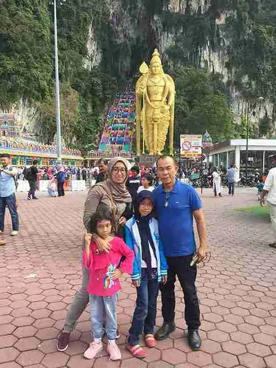 Ketika bus persiaran mendekat dengan batu cave, dari kejauhan tampak sebuah patung besar berwarna emas berdiri tegak di sebelah kanan jalan yang kami lewati. Tampak banyak sekali orang yang datang berkunjung ke tempat ini. Terbukti, batu cave sebagai lokasi kuil Hindu, Batu cave  mampu menarik perhatian ribuan umat dan terutama selama festival tahunan agama Hindu, Thaipusam.