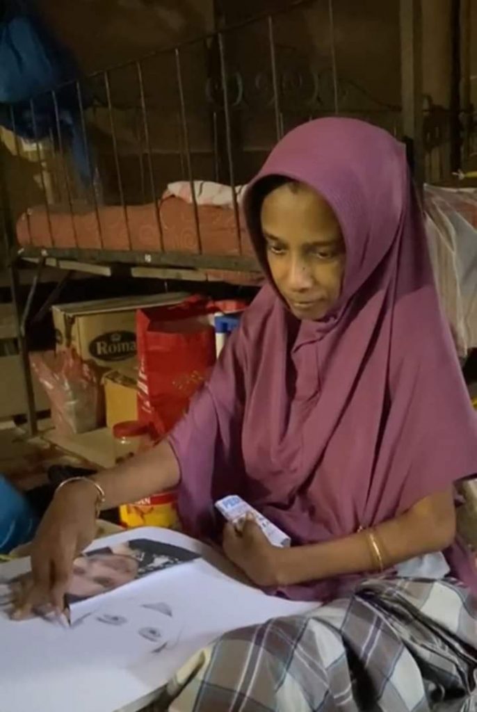 Aceh Utara, Potretonline.com, 24/09/22. Kekurangan bukanlah masalah untuk berkarya. Tekat dan semangat itulah yang dipegang oleh Ibu Rohani disabilitas mahir melukis.