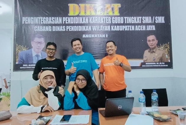 Potret Online I Aceh Jaya – 14/10/22. Cabang Dinas Pendidikan Wilayah Kabupaten Aceh Jaya menyelenggarakan pelatihan Pengintegrasian Pendidikan Karakter Guru Tingkat SMA/SMK dan SLB yang berlokasi di dua tempat yakni Aula Cabdin Aceh Jaya dan SMAN 1 Calang.