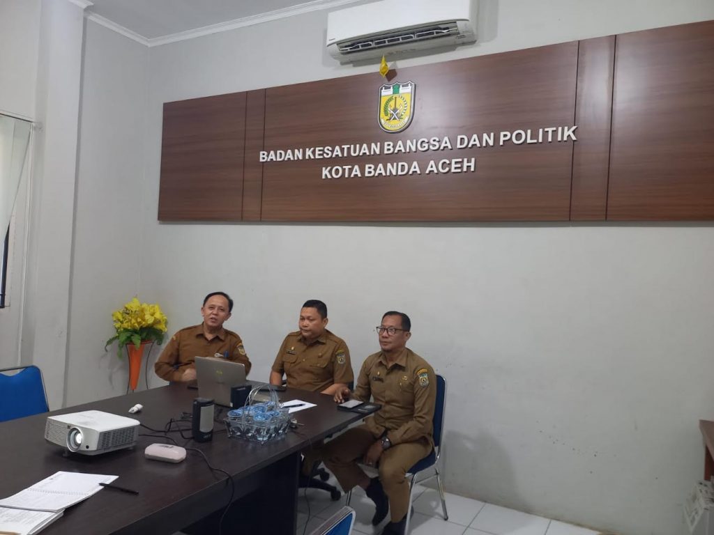 Zoom meeting yang berlangsung di Aula Bakesbangpol setempat, juga diikuti oleh Kepala Bappeda Banda Aceh Weri, SE, MA dan Kepala Diskominfotik Banda Aceh Fadhil, S.Sos, MM.