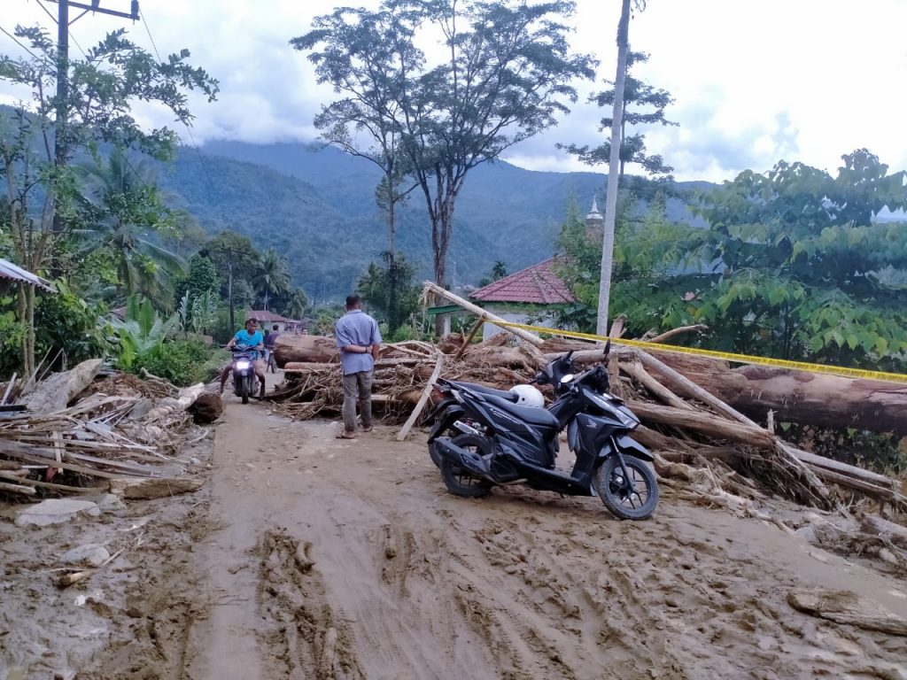 Akibatnya sungai di sebelah timur sana tak mampu menampung air dan longsoran tanah yang tercurah sehingga luapannya menerjang kampungnya.