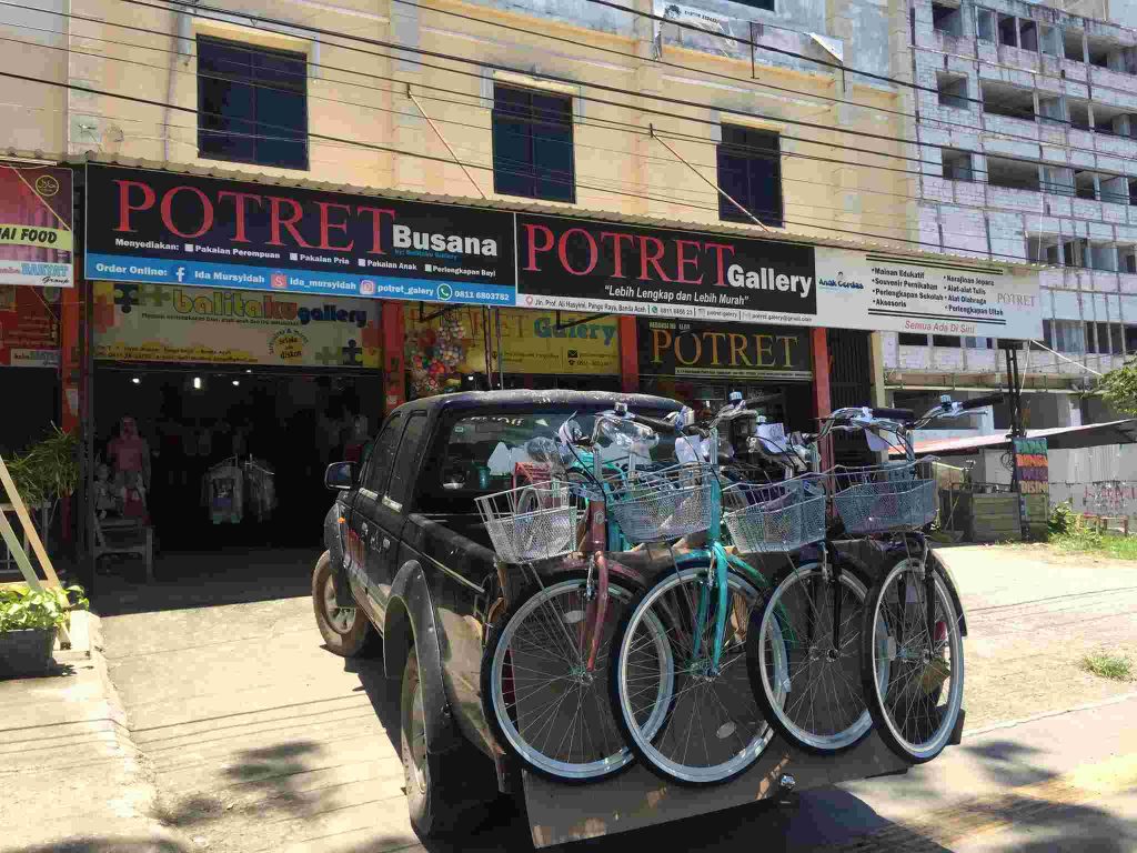 Pagi-pagi kami mulai meminjam pompa di Bengkel Sepeda Apa Raoh dan memompa ban sampai keras. Berangkatlah kami ada empat sepeda, Yadi, Midi dan Amat.