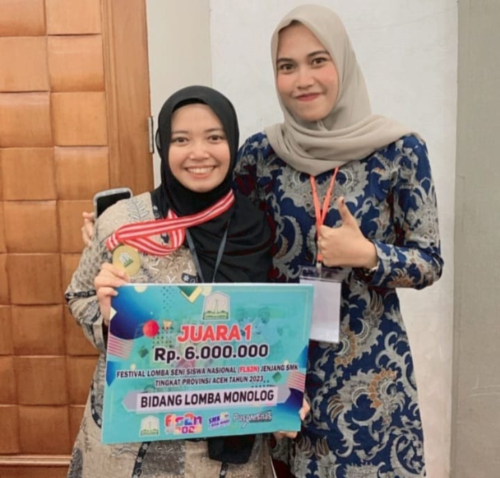 Kepala SMK Negeri 2 Meulaboh, Tarmidhi S ST MSi kepada media ini mengatakan, siswinya berhasil meraih juara satu pada FLS2N cabang monolog sekaligus mewakili Aceh ke tingkat nasional.