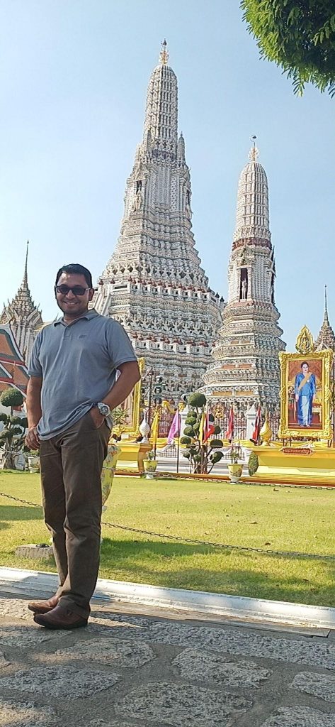 Di pagi hari yang cerah tanggal 19 Desember 2019, kami pergi ke tempat ini dengan menumpang van yang kami order melalui aplikasi Grab. Kami masuk ke kompleks istana tersebut secara beriringan dengan wisatawan lain yang juga sudah banyak antri di sekitar pintu. Meskipun tertutup untuk umum, istana ini tetap menjadi spot yang sangat menarik untuk dikunjungi. Paling tidak untuk sekadar berfoto di depan halamannya. Menurut info yang tertera, kompleks Grand Palace dibuka setiap hari, pukul 08:30 – 16:00. Jika ingin masuk ke dalam kompleks istana, kita harus bayar tiket masuk sebesar 500 THB. Satu hal lagi yang harus diperhatikan adalah pakaian pada saat berkunjung dipastikan harus sopan.