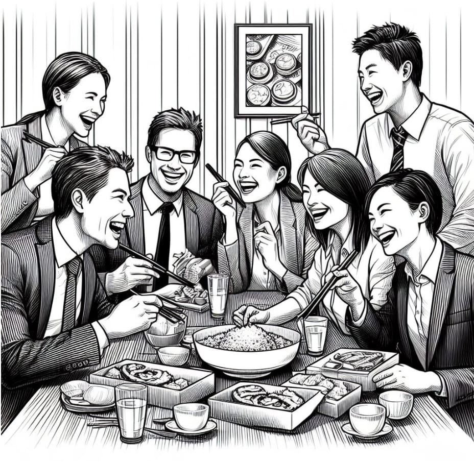 Usai semua kenyang dan selesai makan, Suwito berdiri, kami semua ikut berdiri. Ternyata dia berdiri bukan untuk bayar ke kasir, tapi berdiri karena mengangkat telpon dari ponsel. Kami semua saling lihat, heran. Suwito jalan keluar sambil asyik telpon di luar ruang makan. Tanpa pikir panjang, bu Nela langsung menuju meja kasir, disusul teman-teman lainnya. Yang artinya membayar apa yang sudah dimakan.