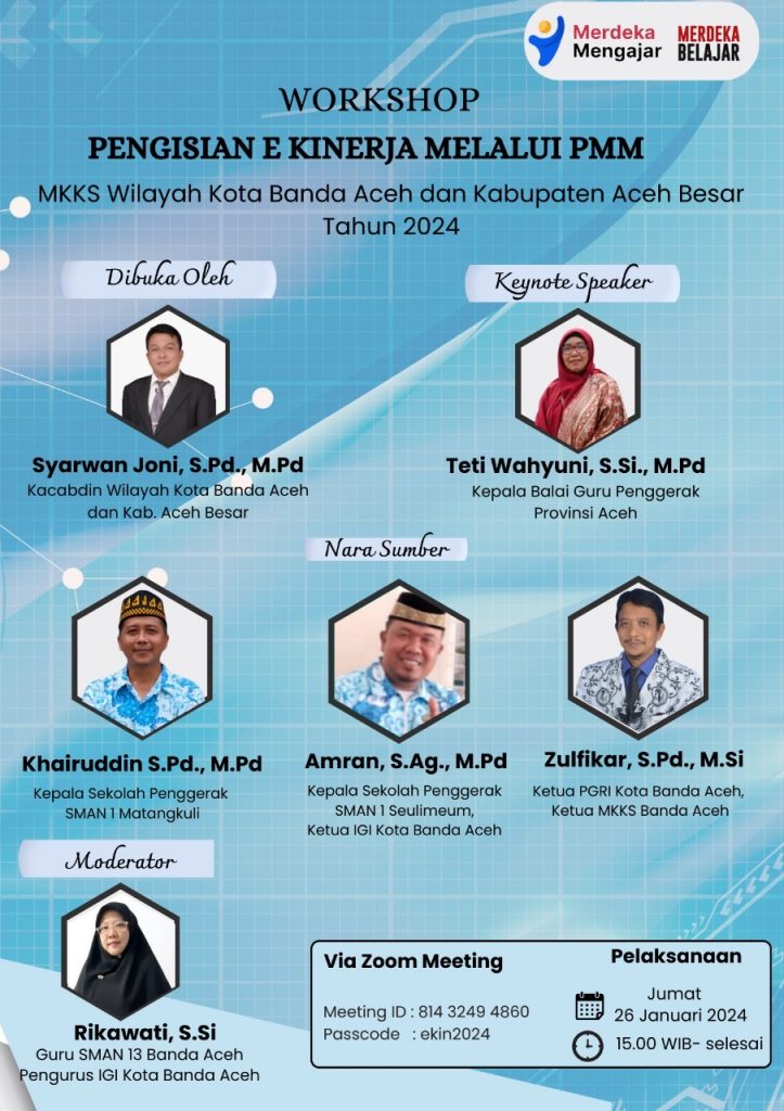 Pada kesempatan ini, Kepala Cabang Dinas Pendidikan Wilayah Banda Aceh dan Kabupaten Aceh Besar, Syarwan Joni SPd MPd menyampaikan dalam sambutannya, bahwa penting sekali E-Kinerja yang terintegrasi melalui Platform PMM guna memudahkan para guru dan kepala sekolah untuk membuat rencana hasil kerja.