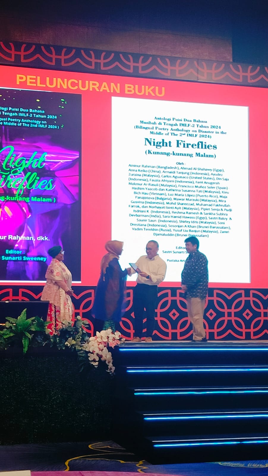 Sastri juga menyampaikan ada dua buku yang diluncurkan yakni buku arkeologi dan soft Launching buku Antalogi Puisi Night Fireflies. Kumpulan puisi dari sastrawan berbagai negara yang menangkap dan menyimpan kenangan pada saat berada di tengah bencana alam di Ranah Minang pada bulan agenda IMLF Mei 2024.