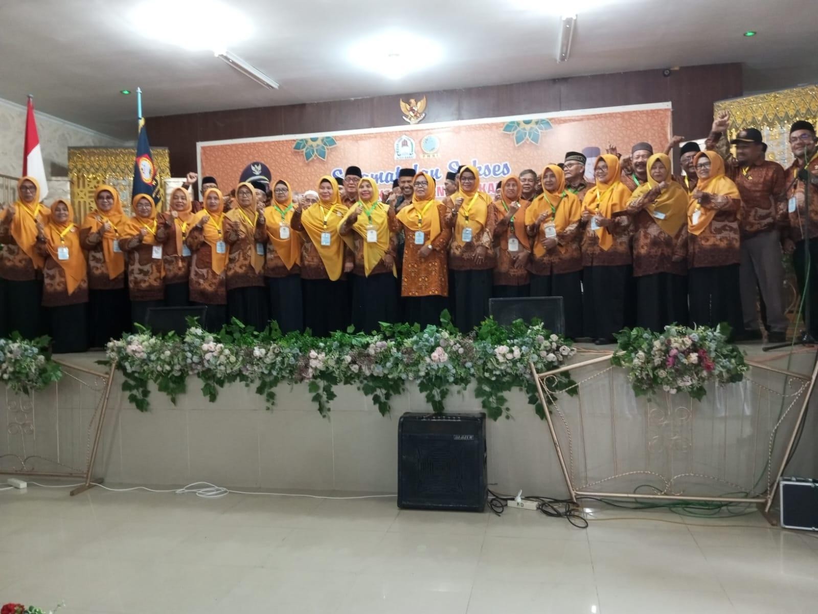 Aku mengamati sekitar. MUSKAB PWRI ini menurutku lebih bersifat menjalin silaturahmi daripada acara seremonial, karena banyak yang hadir bercengkrama lebih akrab, bersenda gurau tanpa ada jarak pemisah. Semua lebur menyatu dengan cerita-cerita lucu, sesekali tertawa renyah, cipika-cipiki, terutama kaum ibu. Ada-ada saja yang dibahas ngalur-ngidul, seolah-olah tanpa beban dan kelihatan masih energik, padahal sungguh, semua hadirin sudah berusia di atas 50 tahun.