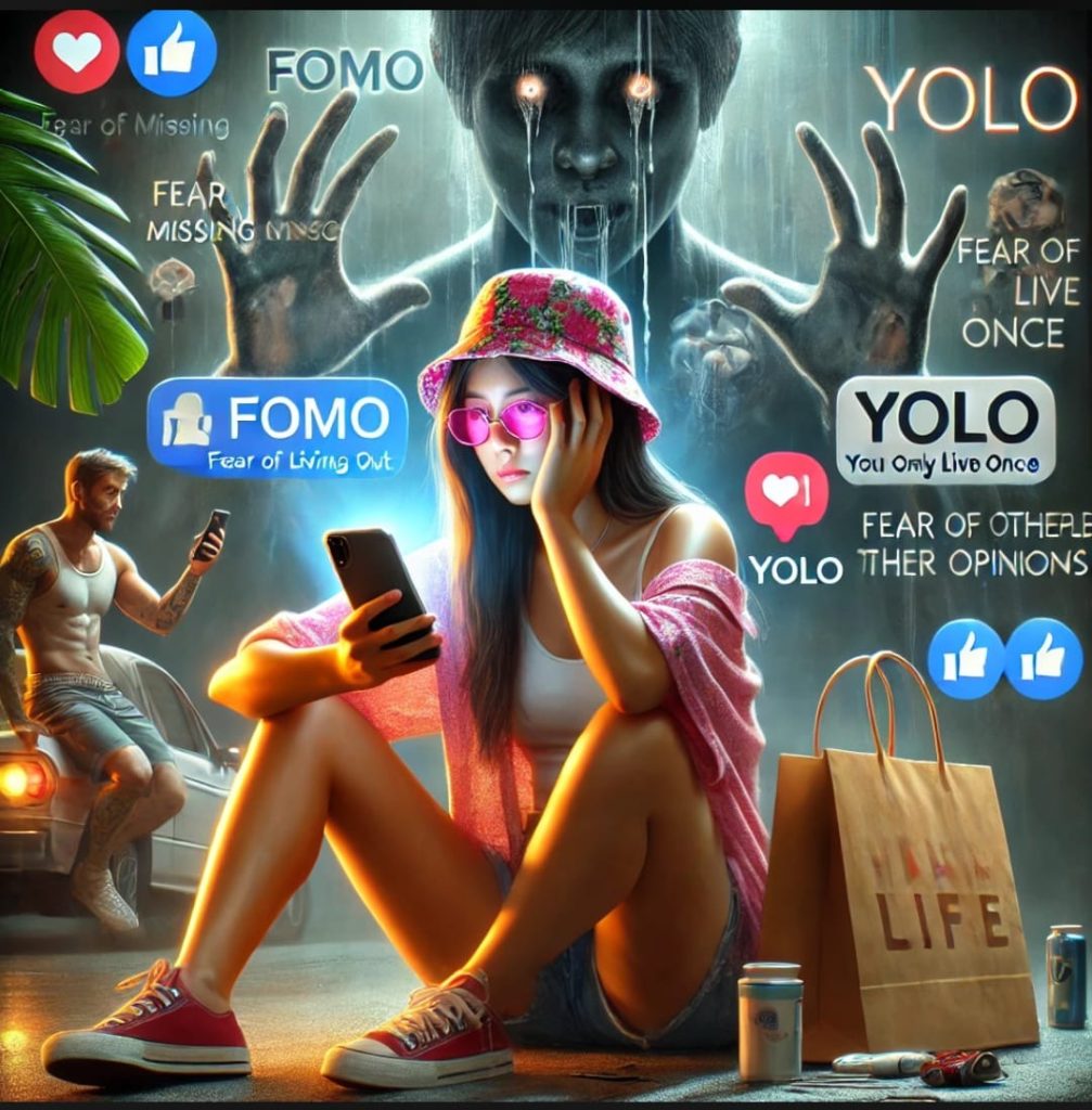 Satu , FOMO (fear of missing out). Orang kayak gini tuh selalu dihantui kecemasan dan ketakutan. Takut kalau ketinggalan berita yang paling update, cemas kalau enggak langsung buka HP pas bunyi, takut nggak bisa ngikutin gaya hidup yang keren menurut narasi yang dibangun di medsos. Dari bangun tidur sampai mau tidur lagi, HP nya bakal di tangan terus, cek trus, scroll trus.
