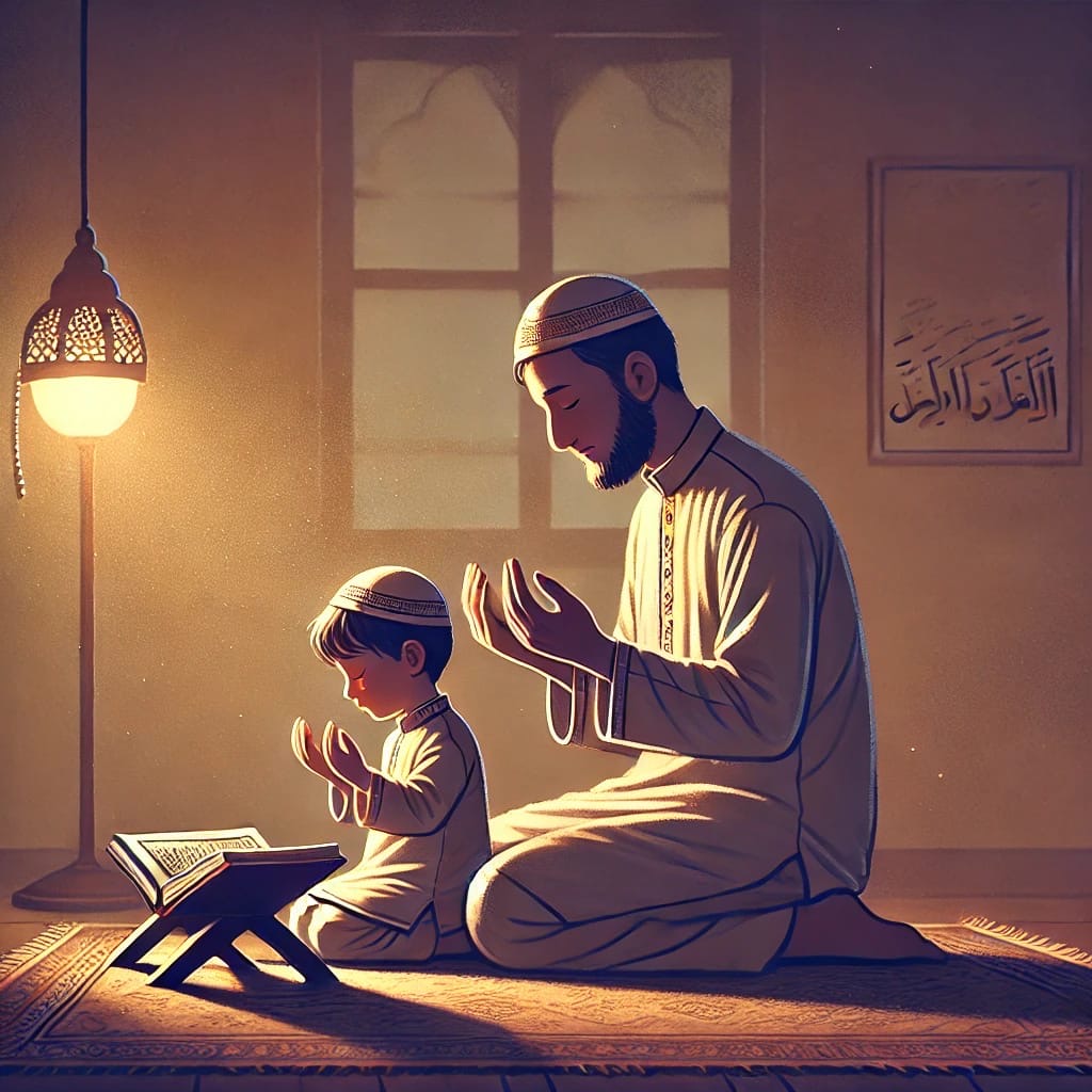 seorang ayah dan anak bungsunya bersujud.