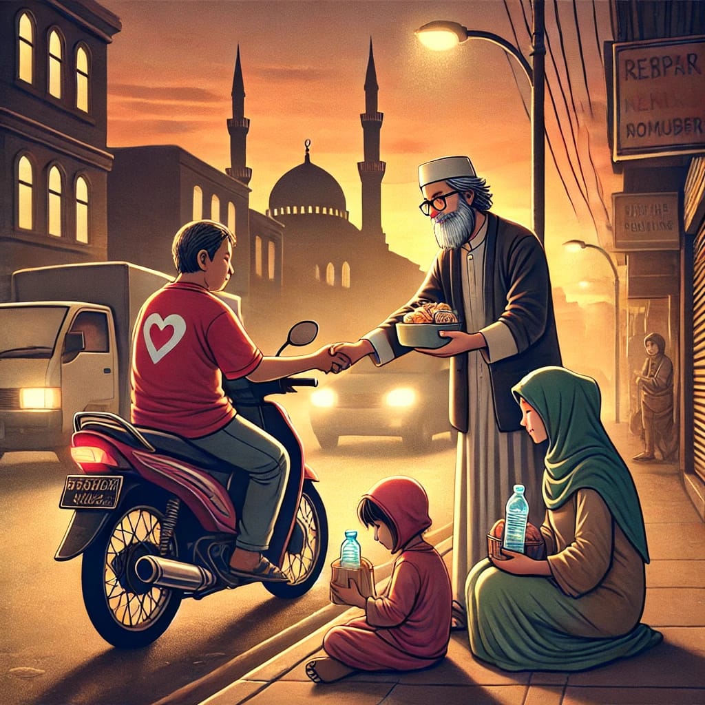 Lelaki itu mendekat, mengulurkan sebungkus nasi,