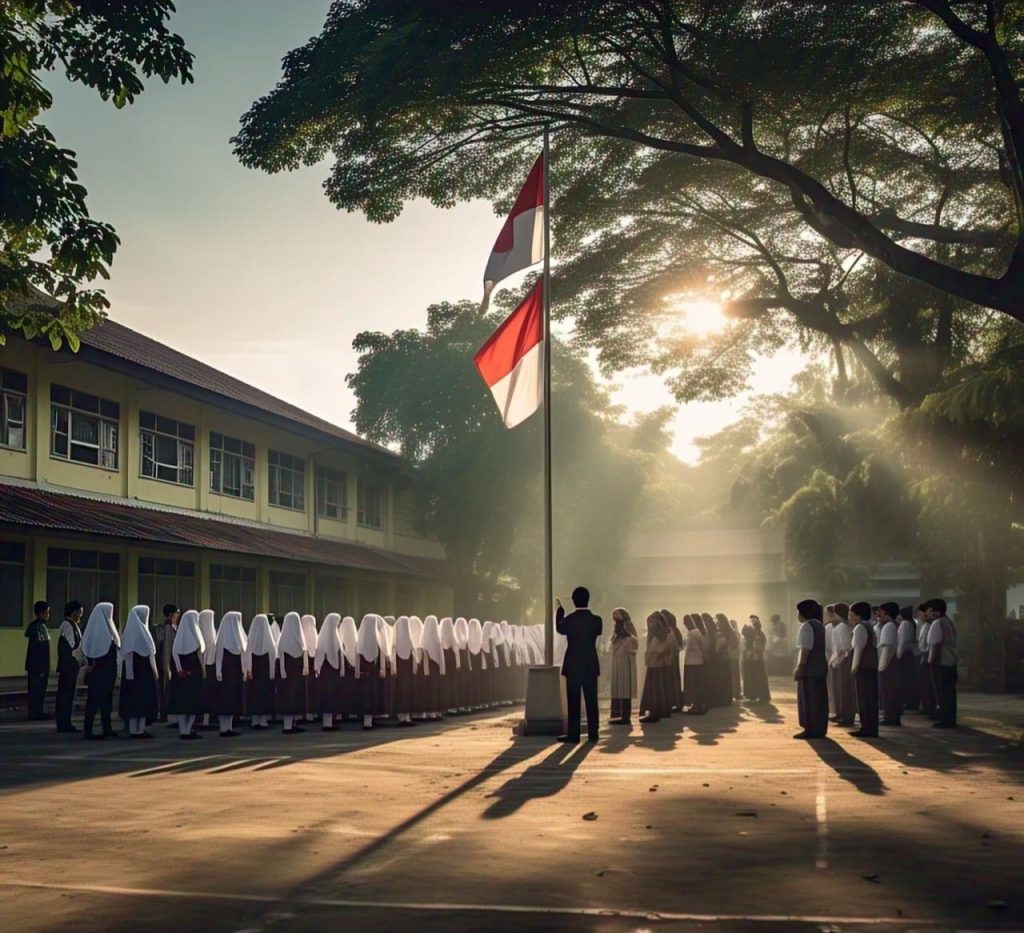 Selang beberapa menit setelahnya, para guru juga sudah mulai berdiri rapi di depan kantor. Petugas-petugas upacara sudah mengatur posisi – dan mataku yang sedikit nakal ini melihat – aku sedang mencari seseorang. Lantas, tak butuh waktu lama diriku langsung menangkap wanita yang cukup anggun, dialah Tari. Dengan pakaian serba putih, gadis itu berbaris di deretan para pengibar bendera. Ya, dia memang salah satu anggota paskibraka.
