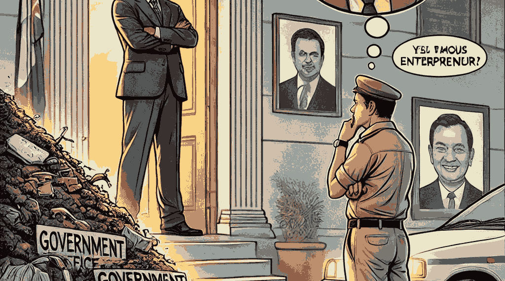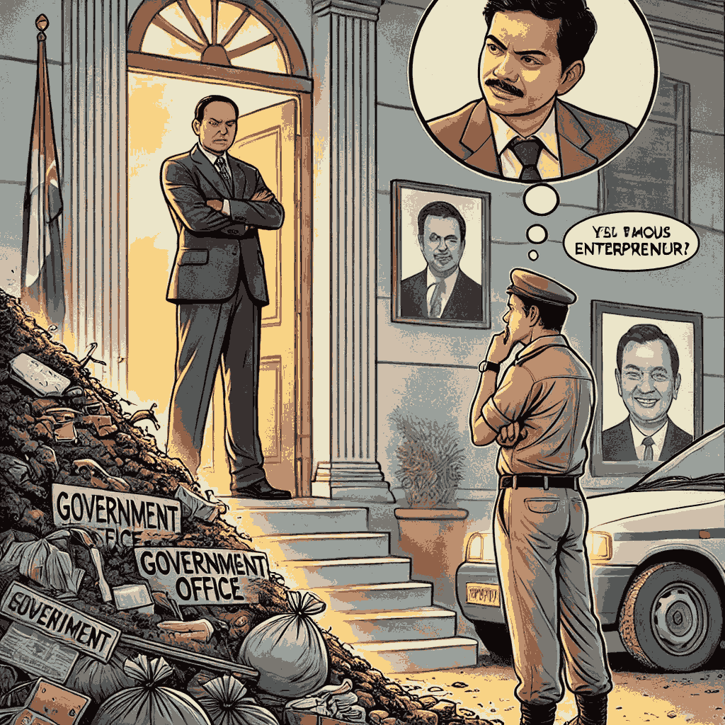 Kang Dedi begitu geram ketika berhadapan dengan pegawai negeri yang malas. Sampah dan tanah galian menumpuk lama di dekat pintu masuk kantor.