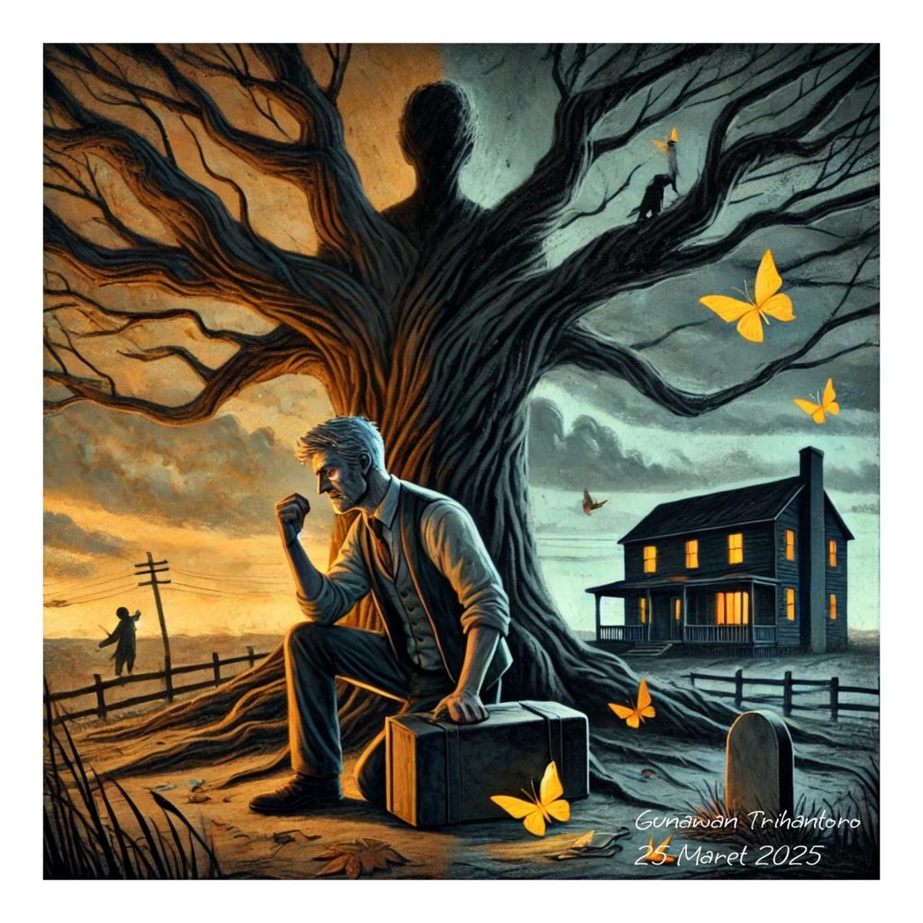 Aku memetik daun pecan, meremasnya hingga hancur. Getahnya menggumpal di telapak tangan, lengket seperti darah yang mengering. Istriku mendekapku dari belakang. Nafasnya di leherku: “Kita sudah menang.”