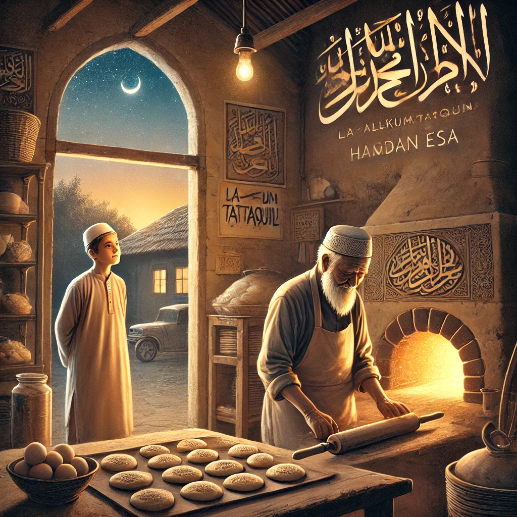 Abdullah menepuk bahu pemuda itu dan berkata, “Setiap Ramadhan, saya belajar menahan lapar, bukan hanya dari makanan, tapi juga dari keburukan hati. Saya belajar mengadoni sabar seperti saya mengadoni bahan roti, belajar membakar nafsu seperti saya memanggang roti, dan belajar memberikan manfaat bagi orang lain seperti roti ini mengenyangkan mereka yang lapar. Setiap tahun, saya semakin sadar bahwa puasa bukan sekadar menahan diri, tetapi membentuk diri. Inilah yang disebut la‘allakum tattaqun, agar kita menjadi orang yang bertaqwa”.