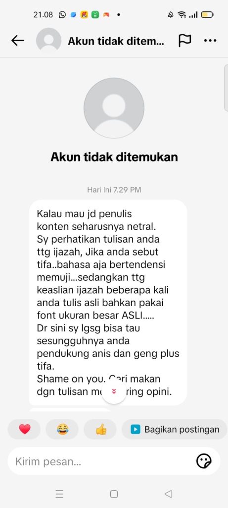 Tapi mari kita telusuri lebih dalam. Akun pengirimnya? “Akun Tidak Ditemukan.”