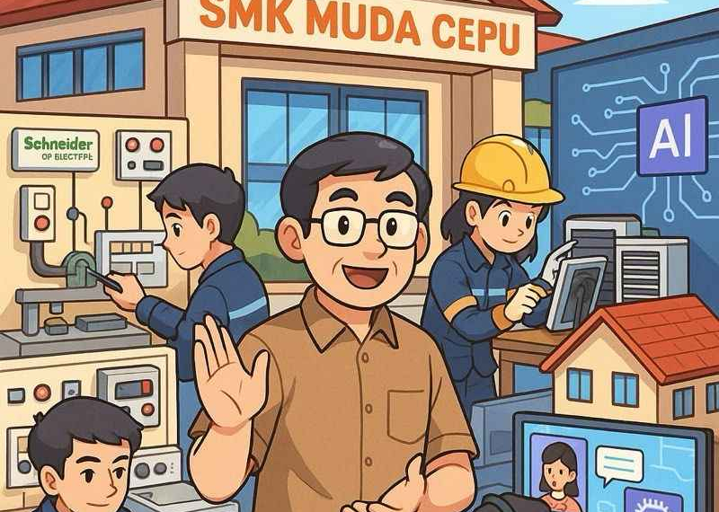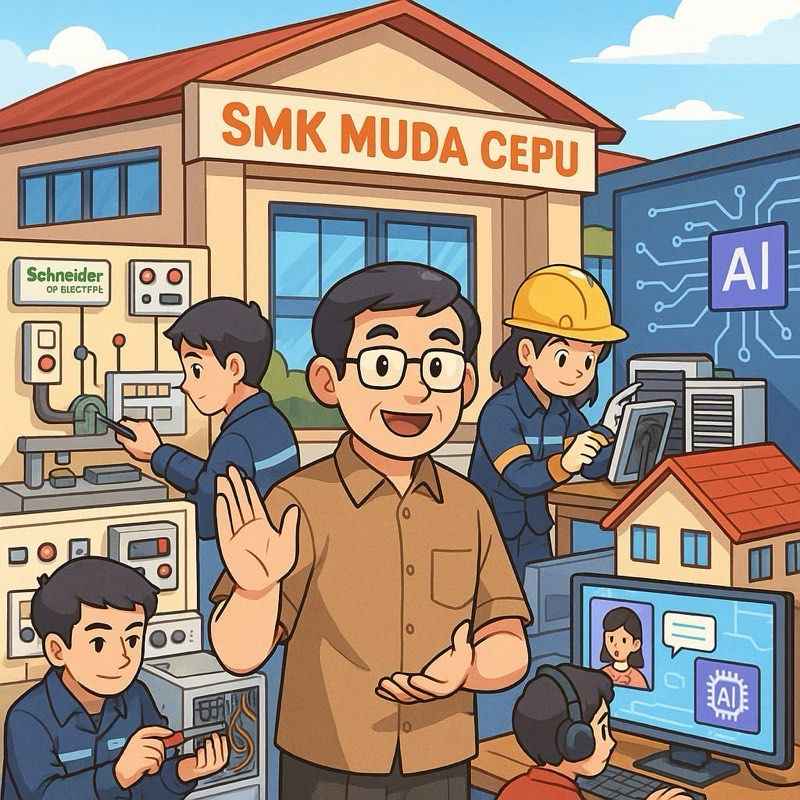 “Di SMK Muda Cepu, kamu bisa jadi teknisi listrik, dan kreator digital. Dunia masa depan butuh keduanya,” kata Pak Joko menutup kunjungan.