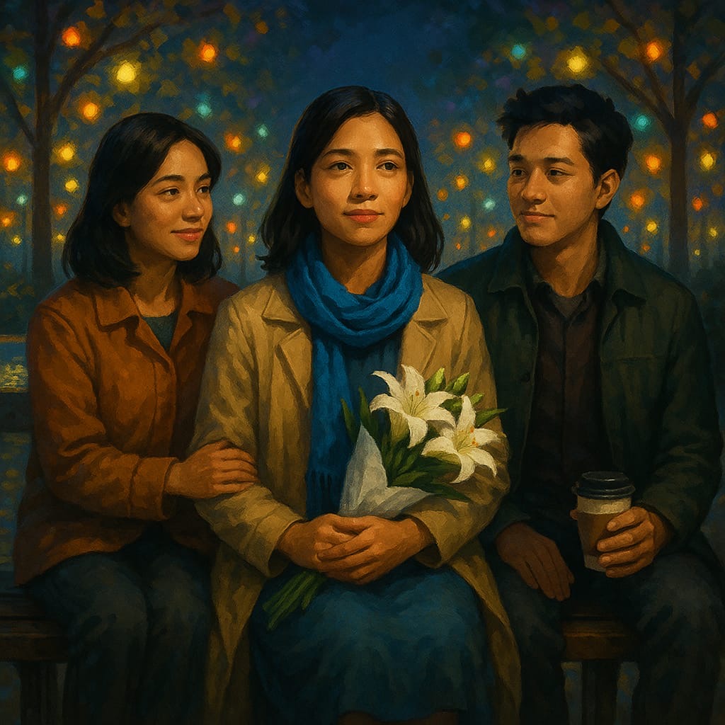 Angin malam masih setia menyapa wajahnya. Tapi kali ini, Chika merasakannya berbeda. Ada kelegaan, ada ketulusan yang mengalir di dada. Ia menatap bunga lili di pangkuannya, lalu tersenyum.