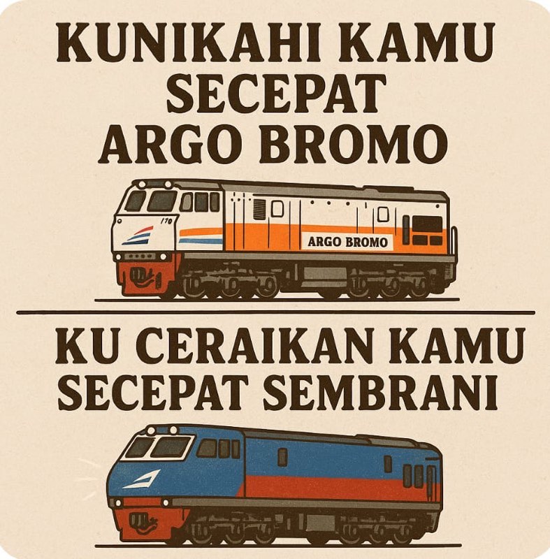 Tomi mengangguk, meski tak sepenuhnya yakin. “Kata orang cinta itu kadang harus dikejar secepat kereta. Dan aku… aku memilih Argo Bromo.”
