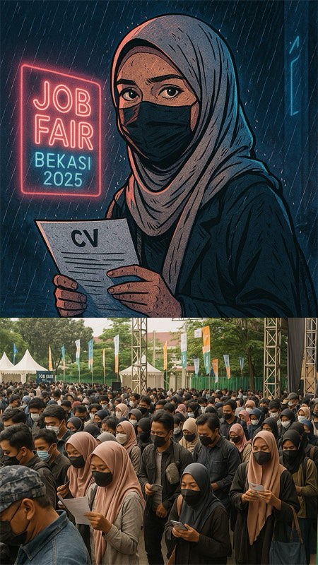 Pada akhirnya, Job Fair Bekasi 2025 bukan tentang kesempatan. Ia tentang luka kolektif yang disusun rapi. Tentang manusia-manusia baik yang dipaksa bersaing seperti makhluk lain, berebut peluang yang tak pernah cukup. Ini bukan sekadar job fair. Ini adalah ratapan sunyi generasi yang dijanjikan masa depan, tapi hanya diberi antrean dan QR code yang tak pernah selesai di-scan.