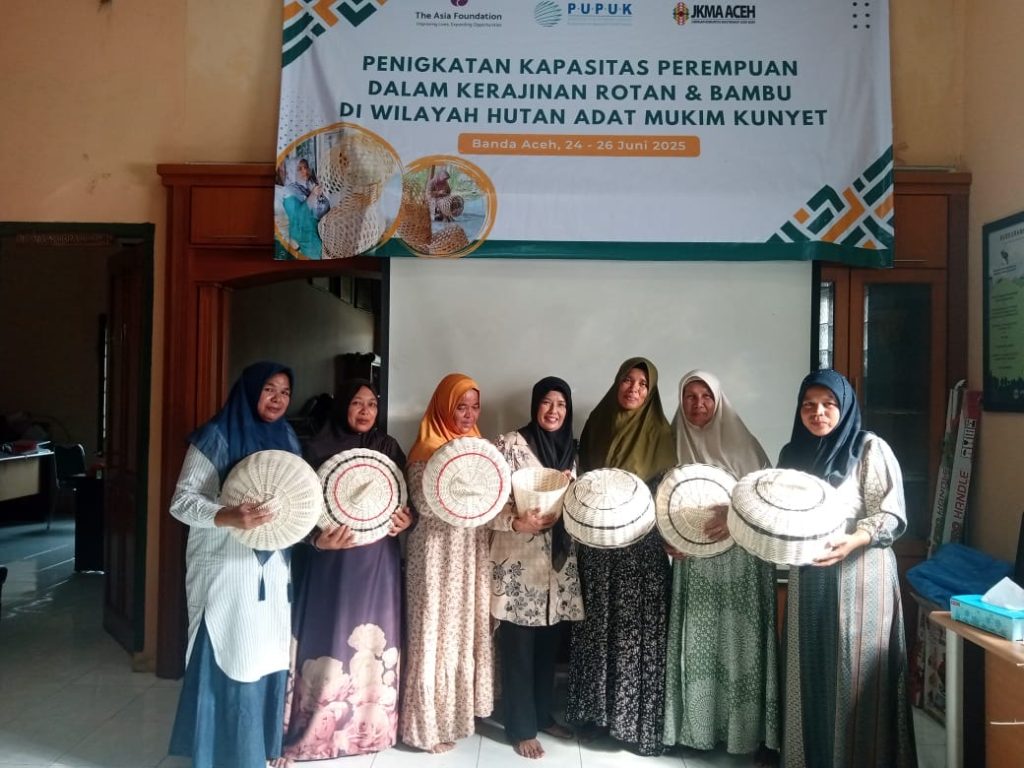 Selama dua hari, yakni tanggal 24–26 Juni 2025 — Jaringan Komunitas Masyarakat Adat (JKMA) Aceh bersama lembaga Perkumpulan untuk Peningkatan Usaha Kecil (PUPUK) Surabaya menggelar pelatihan peningkatan kapasitas bagi perempuan pengrajin rotan dan bambu di wilayah hutan adat Mukim Kunyet, Banda Aceh.