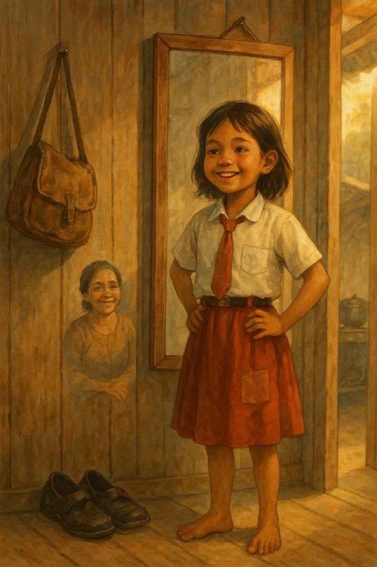 Setiap pagi, Bu Sri menyiapkan sarapan sederhana,nasi hangat dan telur dadar yang dibelah dua, kadang cukup satu tahu goreng. Lalu ia melihat putrinya berdiri di depan kaca kecil yang tergantung miring di dinding ruang tengah. Rani merapikan seragam sekolahnya dengan cermat: kemeja putih yang sudah pudar warnanya, hampir abu-abu, dan rok merah tua yang ditambal di bagian bawah.