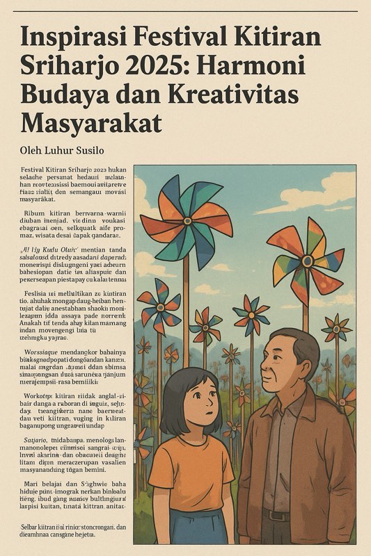 “Di tengah dunia yang makin sibuk dengan layar dan algoritma, ada sebentuk harapan yang berputar dalam tiupan angin Sriharjo. Kitiran itu tak hanya menghibur mata, tetapi menuntun jiwa untuk kembali menyadari: akar budaya adalah cahaya yang tak boleh padam.”