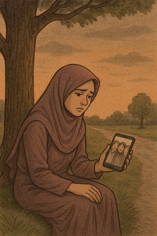 Dudukku di bawah pohon, angin pun mengimbaskan jelbabku, lalu aku menarik nafas panjang dan berdiri. Mungkin semua yang baik tidak harus bersama dan tak semua  luka harus disembuhkan,  walaupun hati tergores,  tetap kujalani untuk berjalan. Jalan kenangan yang pernah kami lewati bersama, sia saia begitu saja.