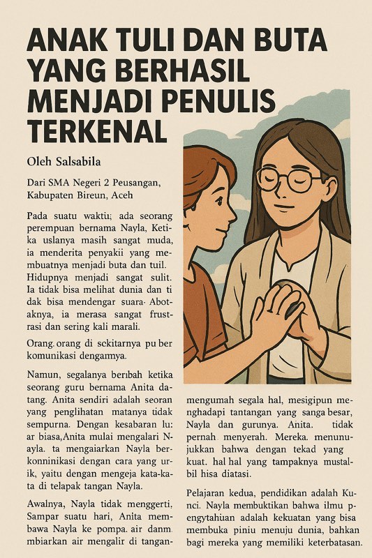 Kehidupan Nayla ini memberikan pelajaran yang luar biasa kepada kita. Pelajaran yang bisa kita ambil dari kisah Nayla ini adalah kegigihan dan kesabaran mengubah segala hal, meskipun menghadapi tantangan yang sangat besar, Nayla dan gurunya, Anita, tidak pernah menyerah. Mereka menunjukkan bahwa dengan tekad yang kuat, hal-hal yang tampaknya mustahil bisa diatasi.