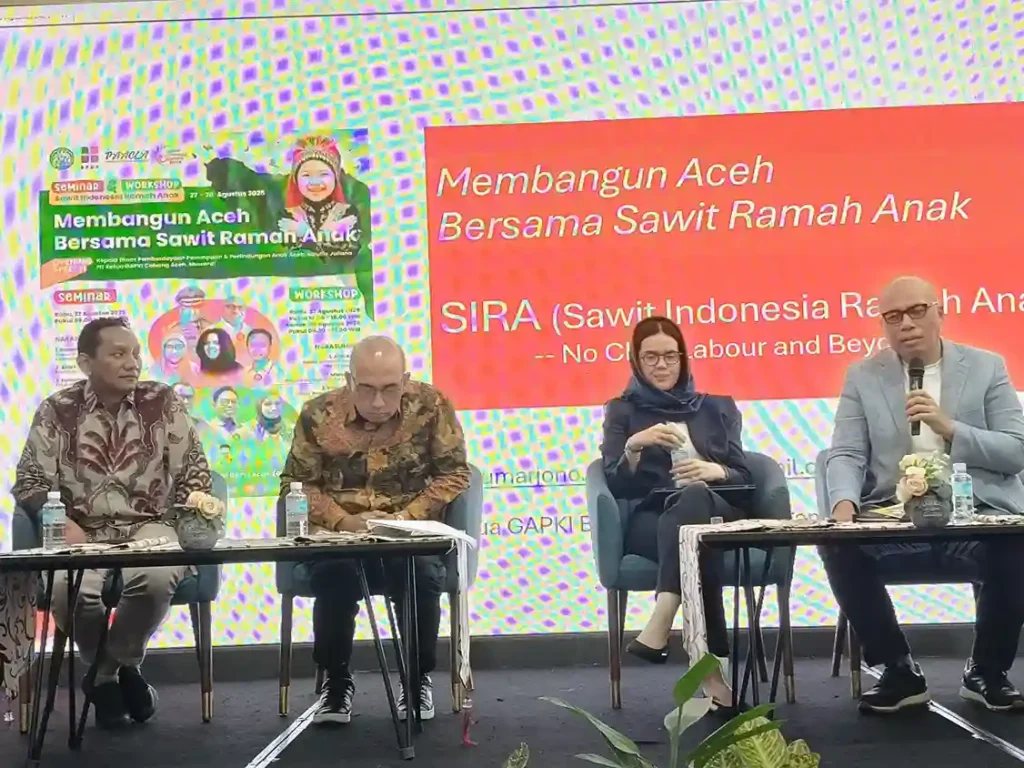 Dengan dukungan BPDP (Badan Pengelola Dana Perkebunan), GAPKI (Gabungan Pengusaha Kelapa Sawit Indonesia) terus bergerak melalui sejumlah inisiatif. Tanggal 27-28 Agustus 2025 di Kyriad Hotel Banda Aceh, melaksanakan seminar dan workshop “Membangun Aceh Bersama Sawit Ramah Anak”. Melibatkan peserta 120 orang dari berbagai pihak. Perusahan, Petani, NGO, Serikat Buruh dan Pemerintah. Tujuanya untuk mempromosikan praktik baik SIRA. Ada buku panduan SIRA sebagai rujukan yang dipublikasikan oleh GAPKI tahun 2021.