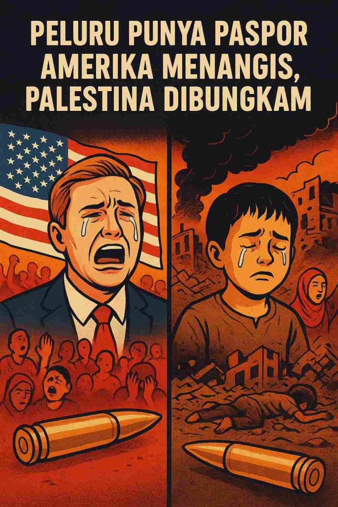 Beginilah hukum tak tertulis dunia modern. Peluru ternyata punya paspor, punya visa simpati. Kalau mengenai tubuh warga Amerika, dunia ikut berduka. Kalau menembus dada anak Palestina, dunia sibuk update skor Liga Champions.