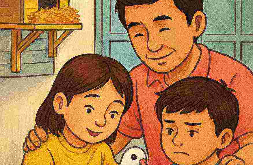 ” Oke, mumpung hari libur, bagaimana kalau Ayah bikin tempat singgah burung di samping dinding rumah” hibur Ayah