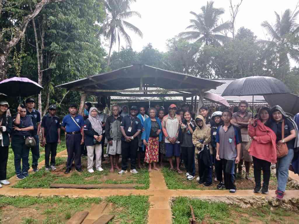 Sebelum berangkat, seluruh rombongan berkumpul di depan lobi sekolah. Di sana, doa bersama dipimpin oleh Fransisca Putuhena, S.Pd, memohon agar perjalanan dan kegiatan mereka diberkati. Suasana hening sejenak, hanya terdengar bunyi rinai hujan yang jatuh di atap seng dan daun-daun di halaman sekolah.