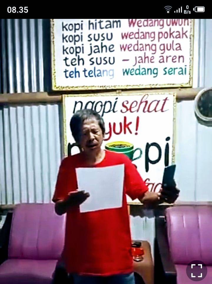 ‎Pengirim puisi dua larik belum rampung di beranda medsosku itu bernama Sarimun Effendi. Teman sekolah SD hingga SMP. Ia pegiat seni lukis sejak SD hingga sekarang. Dan kini beraktivitas di warung kopi yang dikelolanya sendiri, modal sendiri. Ia pengusaha kecil mandiri.