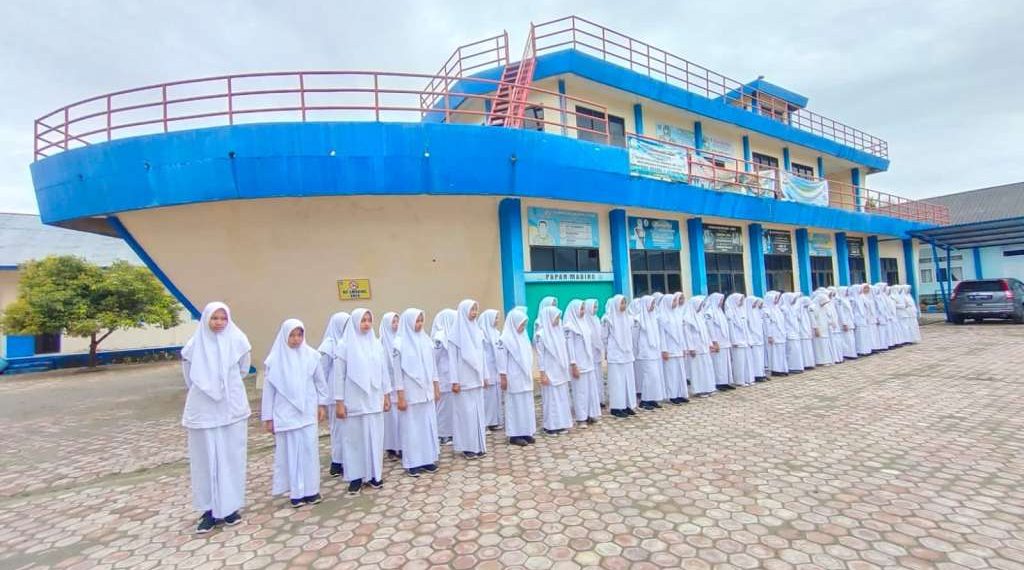 Setiap tamu yang menginjakkan kaki di SMKN 1 Jeunieb pasti akan merasakan getaran kebanggaan yang kuat. Bukan sekadar gerbang indah yang menyambut, melainkan pemandangan ikonik yang langsung mencuri perhatian: sebuah kapal raksasa tiga lantai yang tampak gagah berlayar di tengah daratan sekolah.