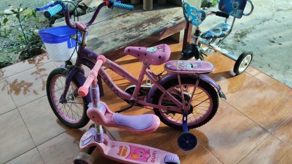 Dan sebuah skuter kecil berwarna pink.