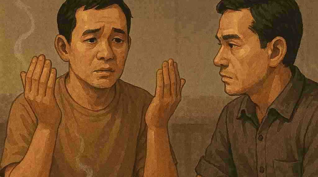 Boy dan Ilham duduk berhadapan. Di antara mereka, dua gelas kopi yang mulai dingin.