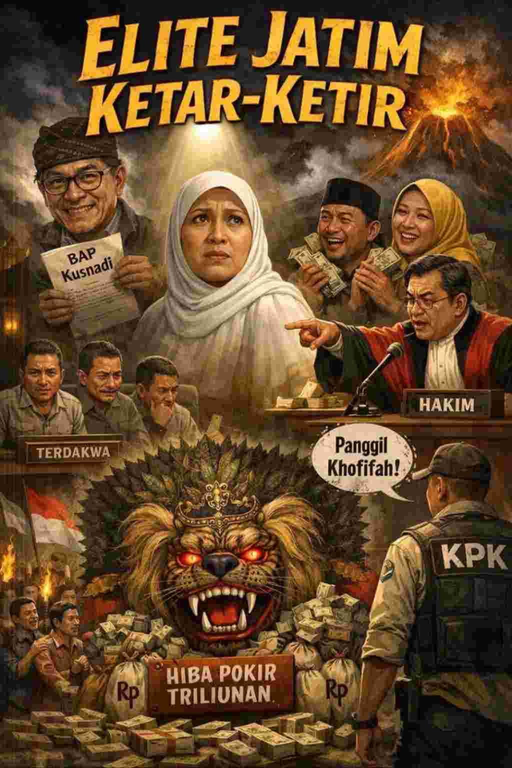 Cak, bayangkan Jawa Timur itu seperti Reog Ponorogo. Harusnya gagah, sakral, penuh wibawa. Tapi di sidang Tipikor Surabaya, Reog itu berubah jadi topeng Singo Barong palsu. Mulutnya mangap bukan karena mistik, tapi karena kenyang menelan triliunan rupiah APBD. Inilah drama korupsi hibah pokok-pokok pikiran (pokir) DPRD Jatim 2019–2024. Bukan dagelan ludruk, tapi ketoprak penghisapan uang rakyat.