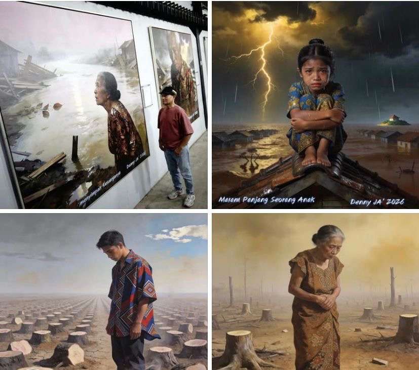 Ramadan kali ini, setelah menghasilkan lebih dari 20 lukisan digital dan buku puisi esai ke-18, Atas Nama Bencana, Denny JA menyelenggarakan Pameran Lukisan Denny JA Menyambut Ramadhan dengan tema Sumatra Menangis dan Kritik Ekologi.